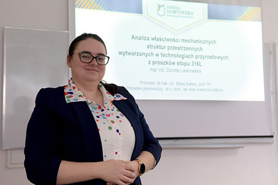 – To było duże wyzwanie! Wymagało intensywnego poszerzania wiedzy – przede wszystkim w pierwszych latach pracy nad doktoratem. Musiałam bardzo dużo czytać, szczególnie jeśli chodzi o zagadnienia związane z inżynierią materiałową i z wytrzymałością materiałów. To chyba najlepsza rada, jaką można dać komuś, kto zaczyna pracę nad doktoratem: trzeba bardzo dużo przeczytać, żeby poznać problem naukowy, który mamy zamiar zbadać. Na samym początku szkoły doktorskiej należy przygotować indywidualny plan badawczy, który potem staje się mapą określającą drogę dojścia do doktoratu. Żeby dobrze napisać ten plan, trzeba właściwie rozeznać się w temacie. W przeciwnym razie możemy postawić sobie zadanie, którego nie da się wykonać lub próbować udowadniać coś, co inni już dawno zweryfikowali. Doktoraty interdyscyplinarne są z pewnością bardzo trudne, wymagają łączenia wiedzy z różnych dziedzin. W takiej sytuacji z łatwością można popełnić błąd. Z drugiej strony to bardzo ciekawe wyzwanie. Myślę, że w tym kierunku powinniśmy zmierzać, żeby nie zamykać się w ramach jednej dyscypliny, a patrzeć szerzej, i myśleć, że to co robimy może przysłużyć się innym.